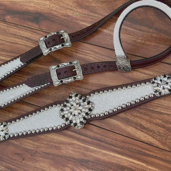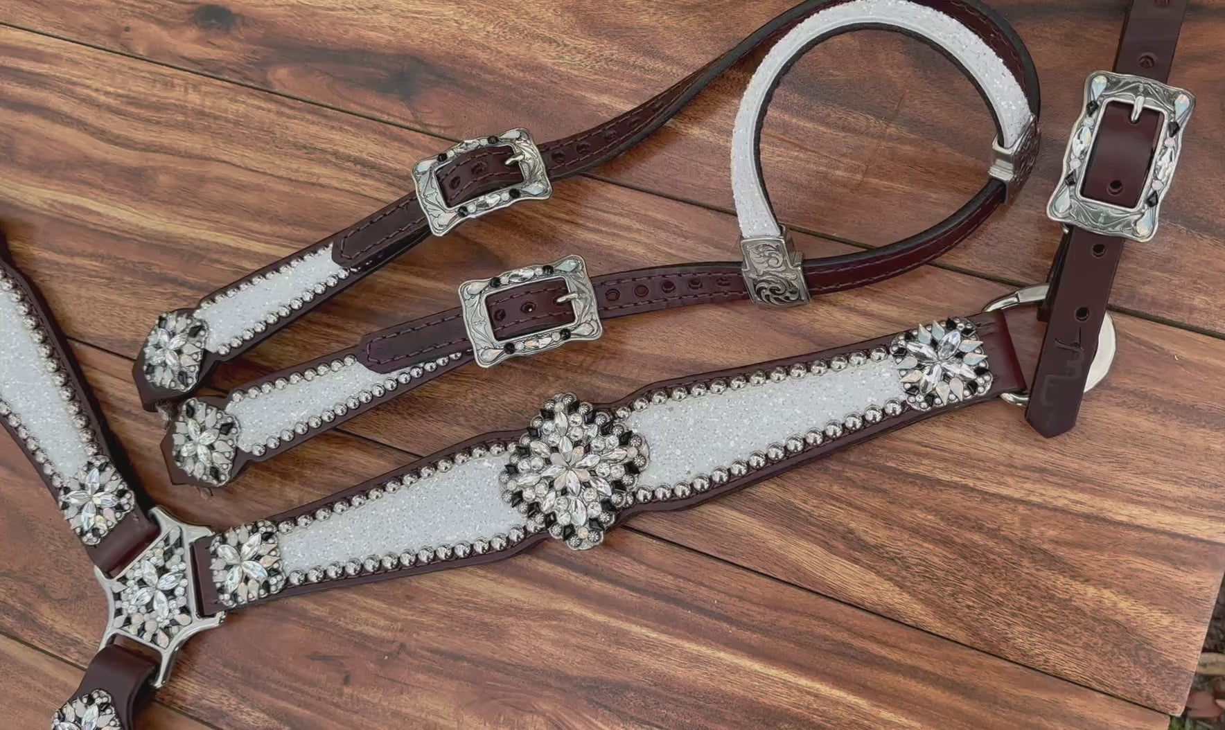 White chunky glitter with stainless steel accents XL Conchos and lots of upgrades!