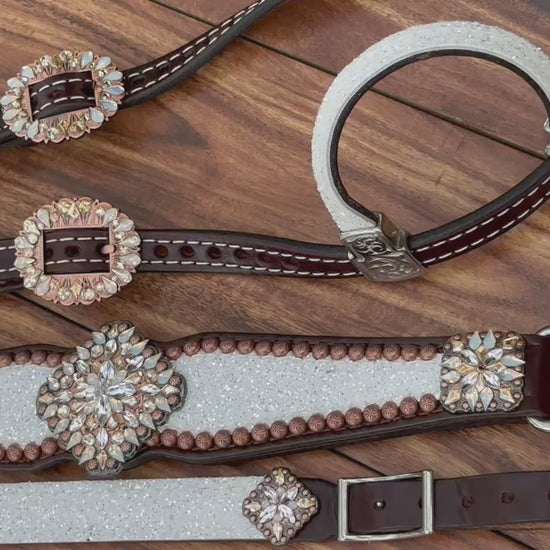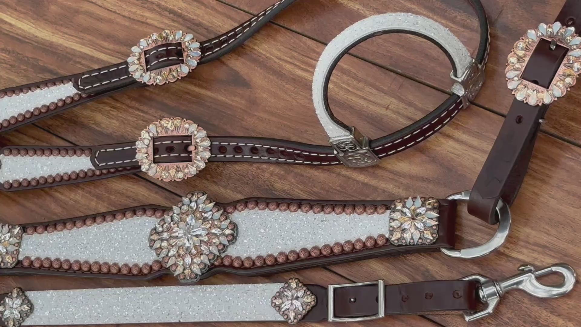 White chunky glitter with Copper accents XL Conchos and lots of upgrades!