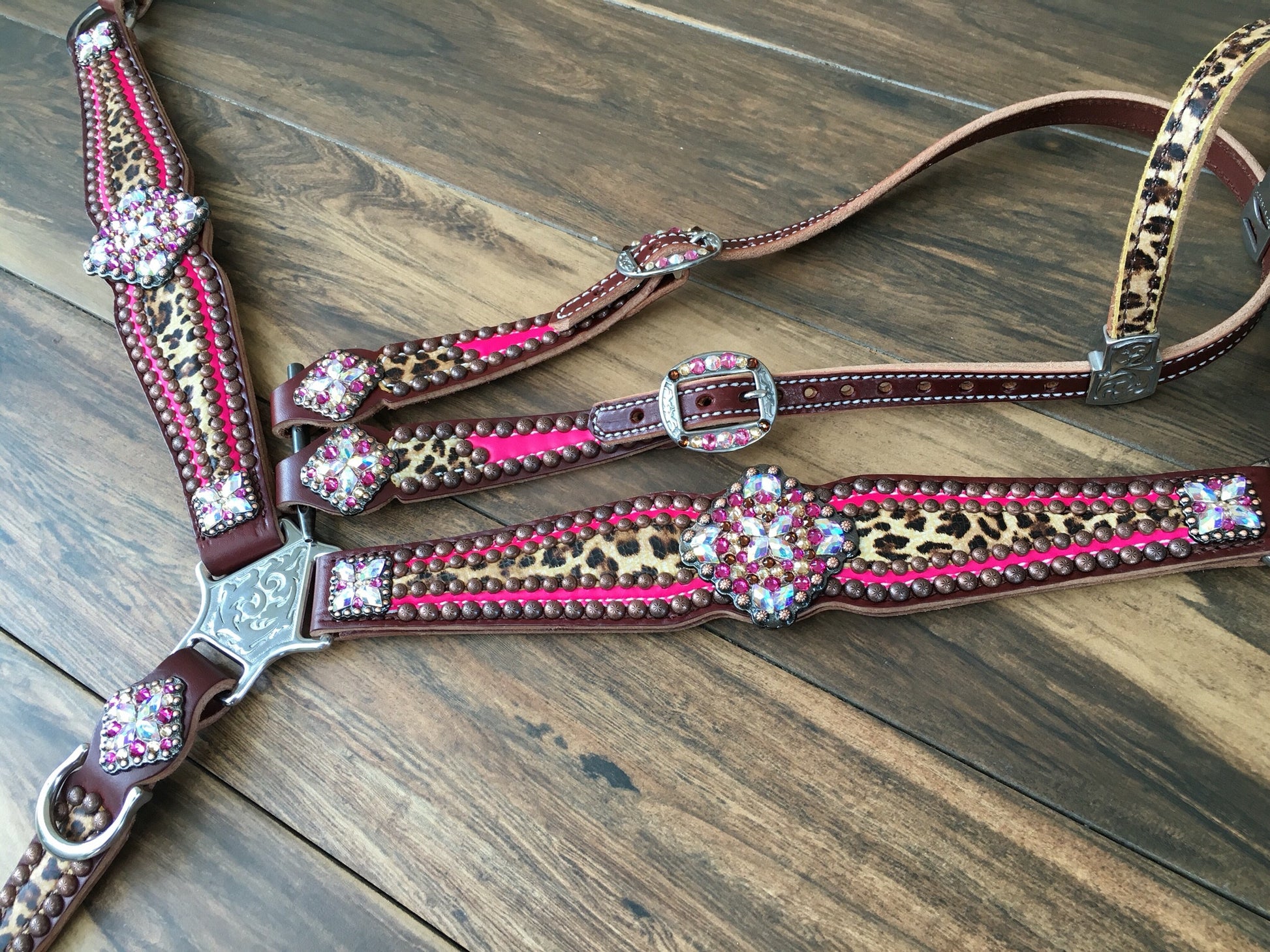 Neon Pink and Cheetah Bridle and Breast collar.